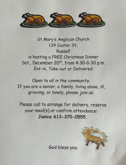 We adhere to the health guidelines offered by the Anglican Diocese of Ottawa and the Eastern Ontario Health Unit. Please contact us at infostmarysrussell@rogers.com or stmarysrusselltechassistyou@gmail.com